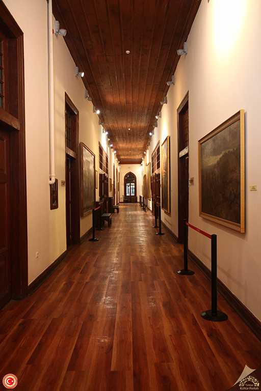 42 metre uzunluğundaki koridorun sol duvarında Refik Epikman’ın “Atatürk Mecliste Konuşuyor” adlı yağlı boya tablosu, “İkinci İçtima” isimli fotoğraf üzerine bir kara kalem çalışması ile “Atatürk’ün Seğmenler Tarafından Karşılanışı” (Saip Tuna), “O Gün” (Refik Epikman), “Çanakkale Savaşı” (Ruhi Arel) ve “Veda” (Hikmet Onat) adlı yağlı boya tablolar teşhir edilmektedir. Sağ duvarda “Atatürk’ün Portresi” (N. Burun imzalı), “Türk Süvarilerinin Akını” (Cevdet Bilgişin) adlı yağlı boya tablolar; “İlk İçtima” isimli fotoğraf üzerine bir kara kalem çalışma, Ça-nakkale Abidesi ö-nünde Atatürk’ü gösteren bir fotoğraf ile “Çanakkale Savaşı” (Mehmet Sami Yetik) ve savaş konulu “Triptik” (Ruhi Arel) yağlı boya tablolar teşhir edilmektedir.