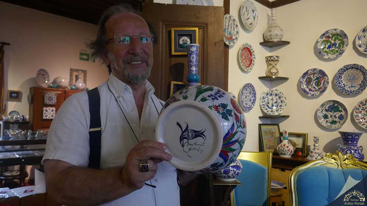 Turkuaz, lapis lazuli, zümrüt yeşili ve mercan kırmızısı kullanarak 16. yüzyılda kullanılan bu dört mineral renklere kesinlikle bağlı kalıyor. Başka bir stüdyoda, kil kütüğünün diskinde zarif bir vazo oluşturan bir çömlek ustasını izliyoruz. Dar atölyede fırınlanmayı bekleyen çanak çömleklerin arasından güçlükle geçebiliyoruz.