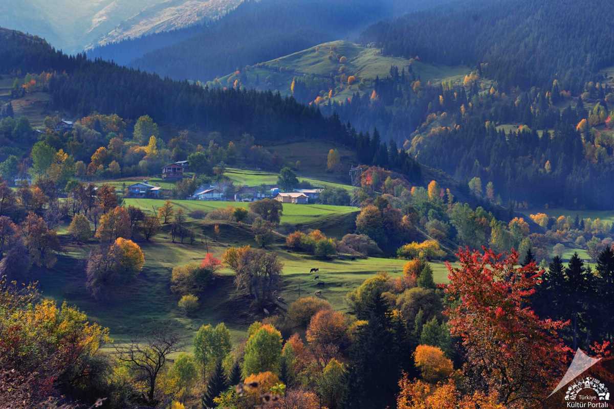 Yeşilin sarı, turuncu ve kırmızının tonlarıyla iç içe geçtiği panoramik bir sonbahar fotoğrafı çekmek için Artvin’in yaylalarına çıkabilir; bu muhteşem doğada otantik bir turizm deneyimi yaşayabilirsin…