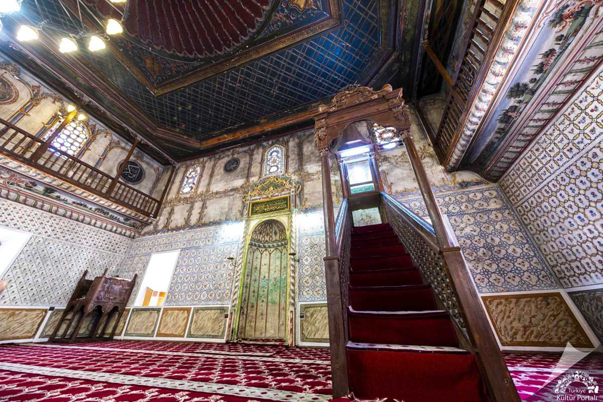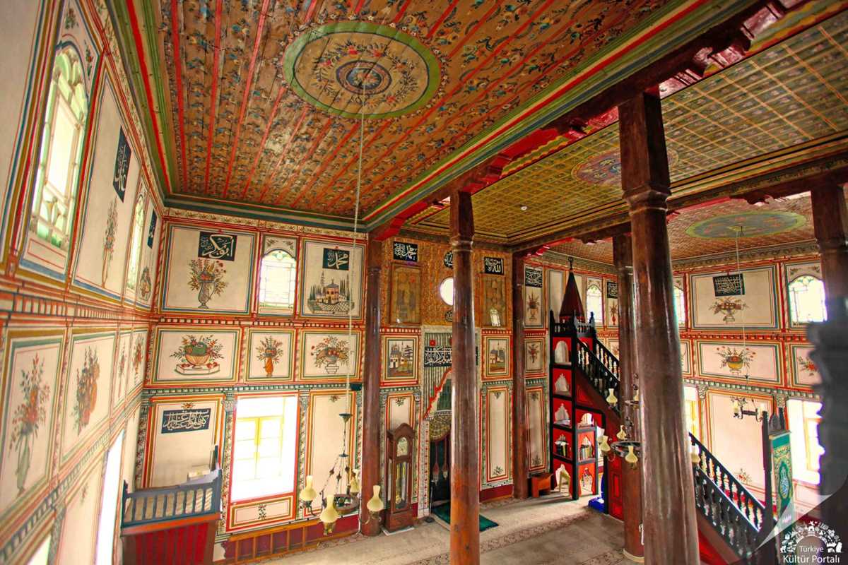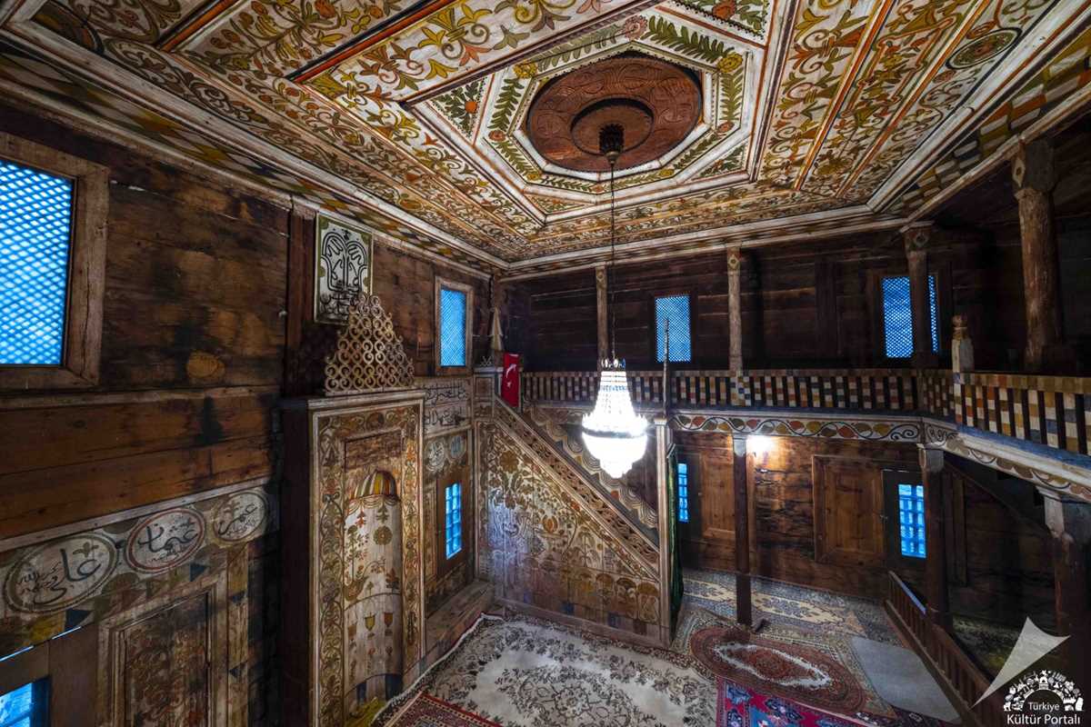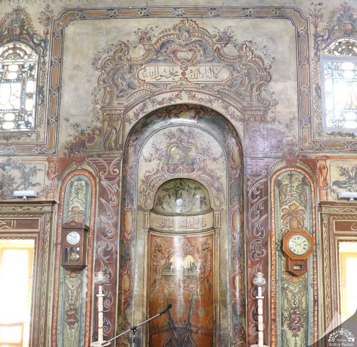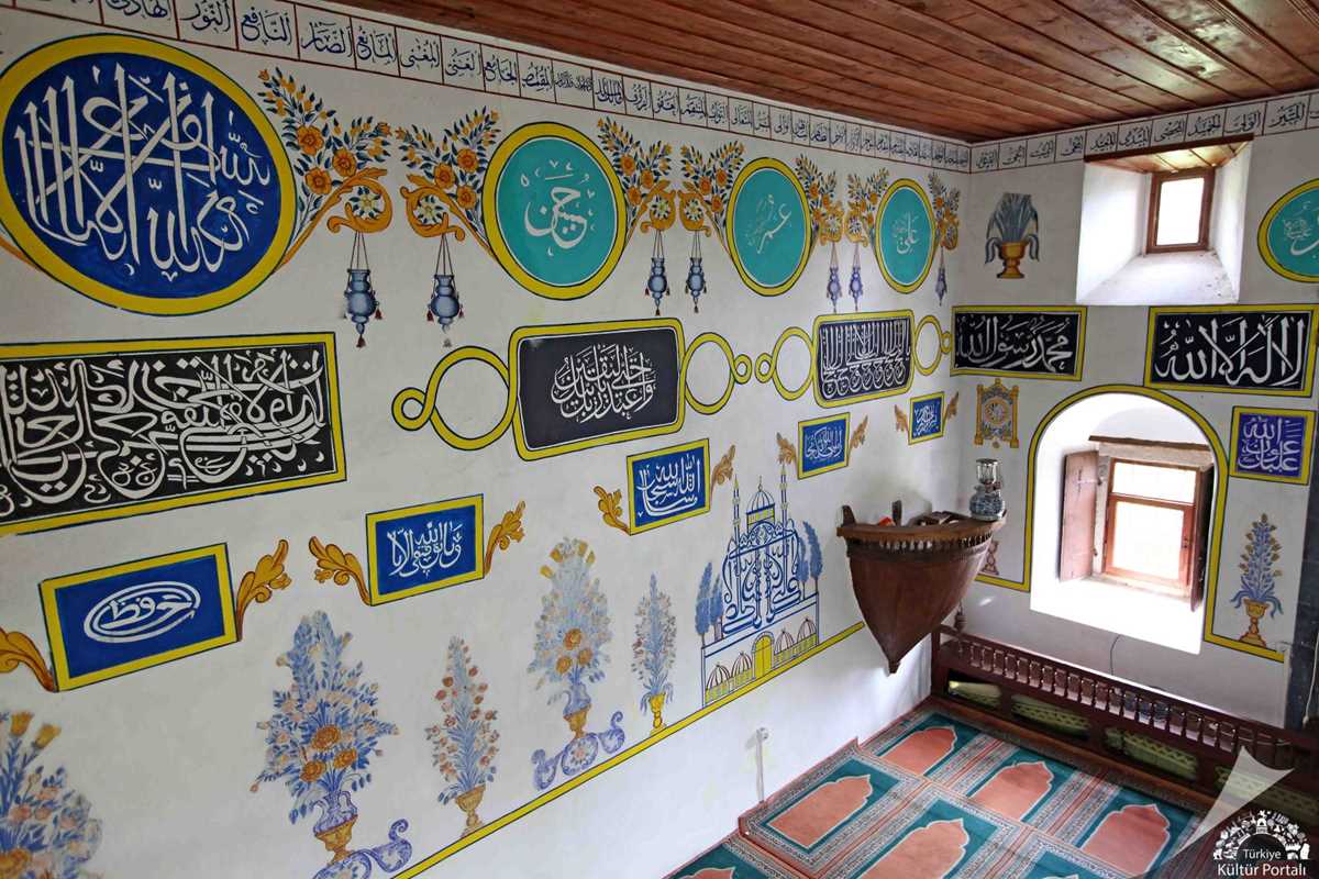 Afyonkarahisar’ın Sandıklı ilçesinde bulunan cami, 1379 yılında inşa edilmiştir. Caminin içindeki süslemeler 19. yüzyıl Osmanlı mimarisinin süsleme özelliklerini yansıtır. Duvar resimlerinde çam ağaçları, sarmaşıklı çiçek motifleri, kıvrık dallı ağaçlar, su kovaları, vazolu ve sepetli çiçekler, asma yaprakları ve üzüm salkımları arasındaki vazoların üzerinde girland motifleri görülür. Duvarlara ve kubbeye ayetler ve dini yazılar bezenmiştir. Kubbede Sultanahmet ve Tophane Camii tasvirleri de bulunur. Bunlar, devrin perspektif anlayışına göre minyatür tipte yapılmıştır.