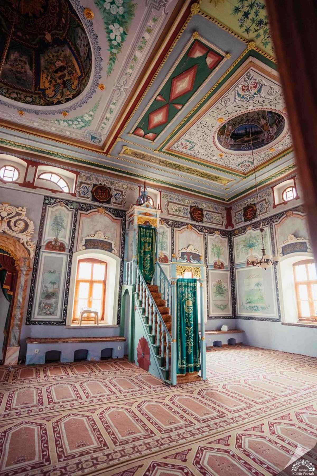 Kütahya’nın Şaphane ilçesinde yer alan caminin yapım tarihi kesin olarak bilinmemektedir. Caminin iç mekân duvarlarındaki kalem işi süslemeler harim duvarları, ahşap tavan, kubbe içi, minber ve vaaz kürsüsünde yoğunlaşmıştır. Doğu, batı ve güney duvarlar birbirlerinden farklı boyutlardaki panolara ayrılmış ve Kuran-ı Kerim’den ayetler, bitkisel motifler, saat, cami ve hayat ağacı gibi resimler bu panoların içerisine yapılmıştır. Caminin kubbesi de oldukça süslüdür. Çıtalarla düzenlenen ahşap tavandaki geometrik yüzeylerin içleri farklı renklere boyanarak tavana hareketlilik kazandırılmıştır.