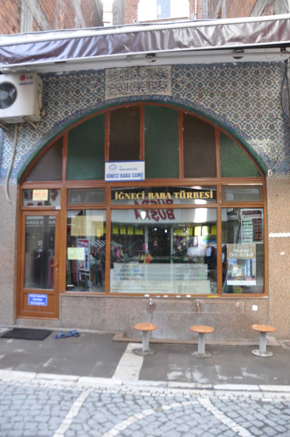 Amasya Merkez Dere Mahallesi Kocacık Çarşısı Çıtak İşhanı karşısında yer alır. Dış cephesi kemerli olup, demir çerçeve ve renkli cam ile kapatılmıştır. Dikdörtgen planlı yapının içerisinde İğneci Baba ve oğluna ait iki sanduka yer alır.