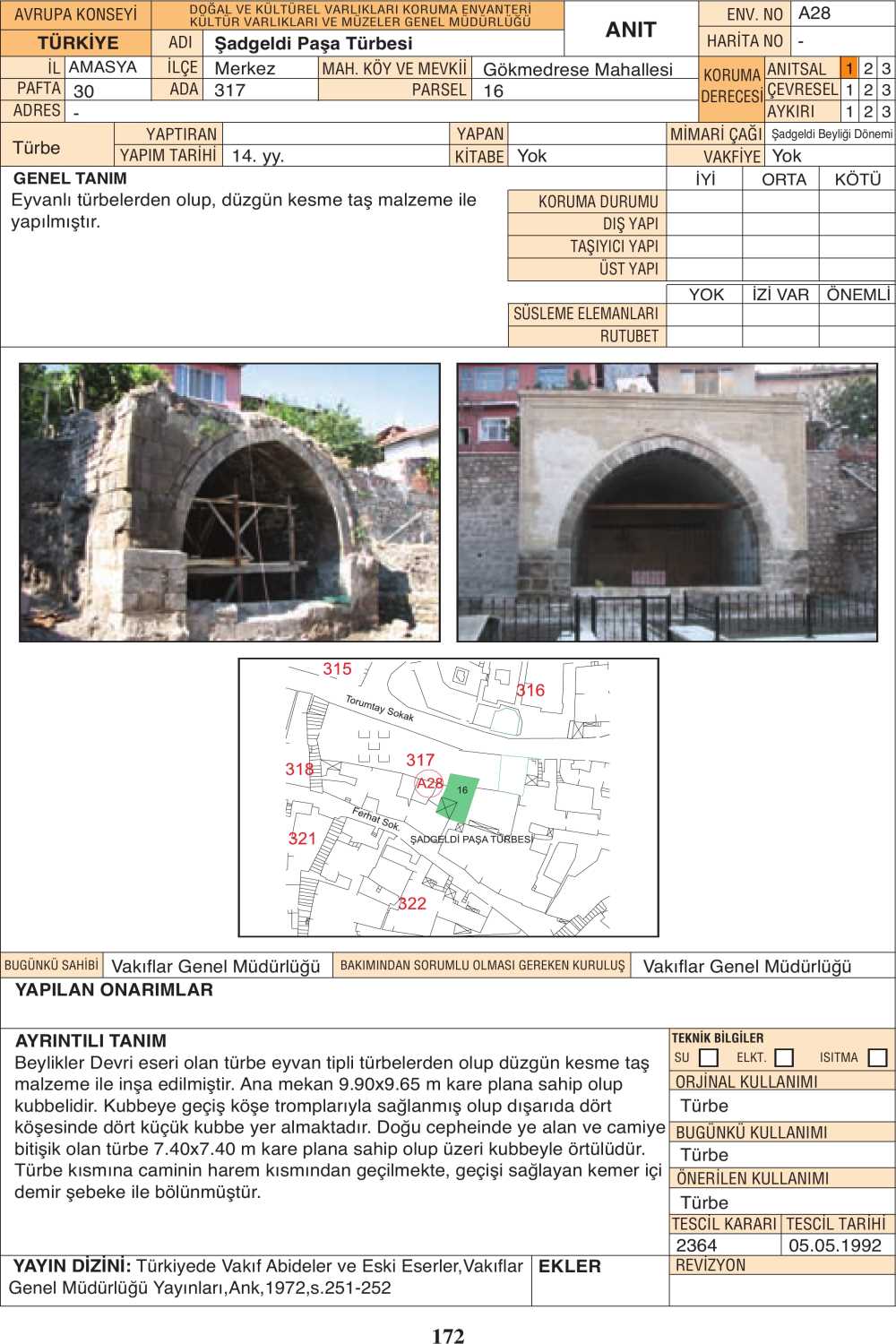 Halifet Gazi Türbesi’nin karşısında, Kadılar Türbesi’nin güneybatısındadır. Yapı, Kadılar Türbesi’ne çok benzemektedir. 14. yy.’da inşa edilen eyvan tipli türbe dikdörtgen planlıdır. Duvarları kesme taş olan türbenin üzeri tonoz örtülüdür. Amasya Şadgeldi Beyliğinin kurucusuna ait anıt mezardır.
