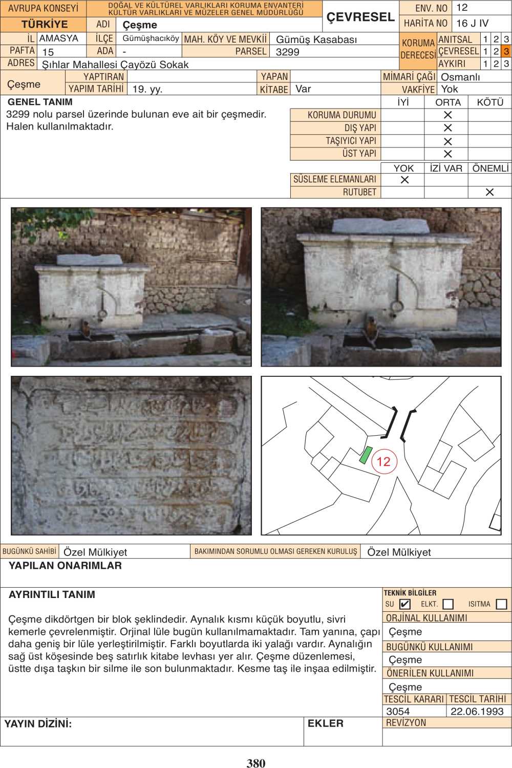 3299 nolu parsel üzerinde bulunan eve ait bir çeşmedir.