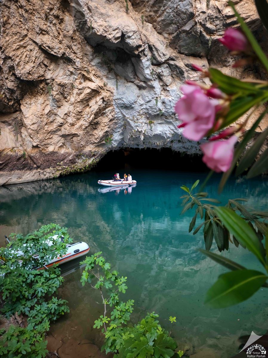 Mağara havası çok rutubetli ve ısısı 16-18 derece civarındadır. Çevrenin karstik topografyası ve çam ormanları güzel bir manzara oluşturmaktadır. Çok uzun ve büyük bir yer altı sisteminin çıkış ucunda bulunmaktadır. Kızılova, Kambos ve Söbüce suyunu çeken bu büyük sistem, Oruç Düdeni Mağarası altında Altınbeşik-Düdensuyu Mağarası’nda son bulmaktadır. Bu büyük yer altı su sistemi, kuş uçuşu 100 kilometreden fazla uzunluğu ile dünyadaki en uzun ve büyük karst sistemlerinden biridir. Mağara içinden çıkan su Beyşehir Gölü ile bağlantılıdır. Su içinde kaldığı için mağarada gezinti, sandal ve kayıklarla yapılabilmektedir.