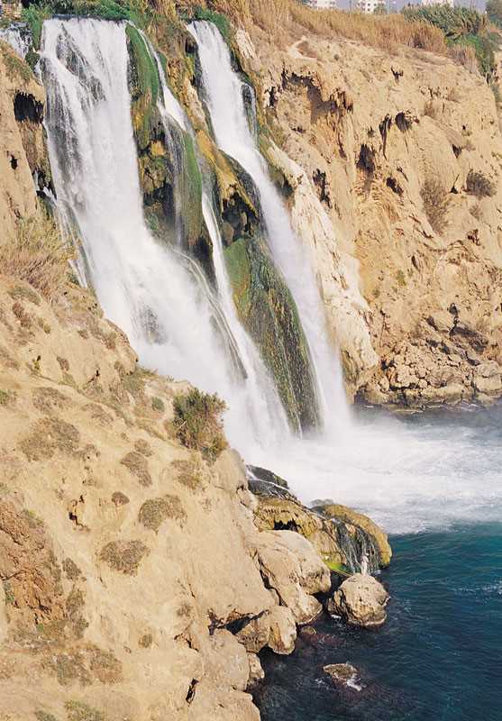 Antalya kent merkezine 8 km uzaklıkta, Lara istikametinde bulunan şelale "Karpuzkaldıran" olarak da bilinir. Düden Nehri'nin denize ulaştığı Lara yolu üzerinden sularını denize 40 metre yükseklikten boşaltır; devasa suyun püskürmesiyle deniz üzerinde bir sis bulutu oluşturur. Yakınında bulunan Gençlik Parkı, şelale manzarası için ideal bir izleme noktasıdır. Parkta kafeterya, otopark ve piknik alanı da bulunmakta; şelale yakınına tekne turları düzenlenmektedir.