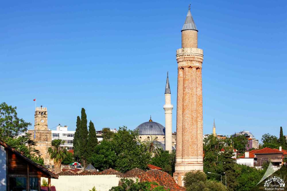 Antalya’nın sembolü olan Yivli Minare, zeminden yukarı doğru; kaide, pabuç, tambur, gövde, şerefe, petek ve külah bölümlerinden oluşmaktadır. Blok kesme taşlar üzerine tuğladan inşa edilmiş olup üstte, köşelerden pahlanarak yükseltilmiş sekizgen bir kasnağa dönüşmektedir. Bu sekizgen kasnak, taş ve tuğla dizileriyle oluşturulan pano şeklinde tasarlanmış nişlere bölünmüştür. Batı cephesindeki nişlerde inşa kitabesi yer alır. Kuzey cephesindeki küçük bir kapıdan, doksan basamaklı bir merdivenle minareye çıkılmaktadır. Minarenin yüksekliği otuz metre kadardır.