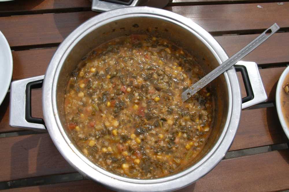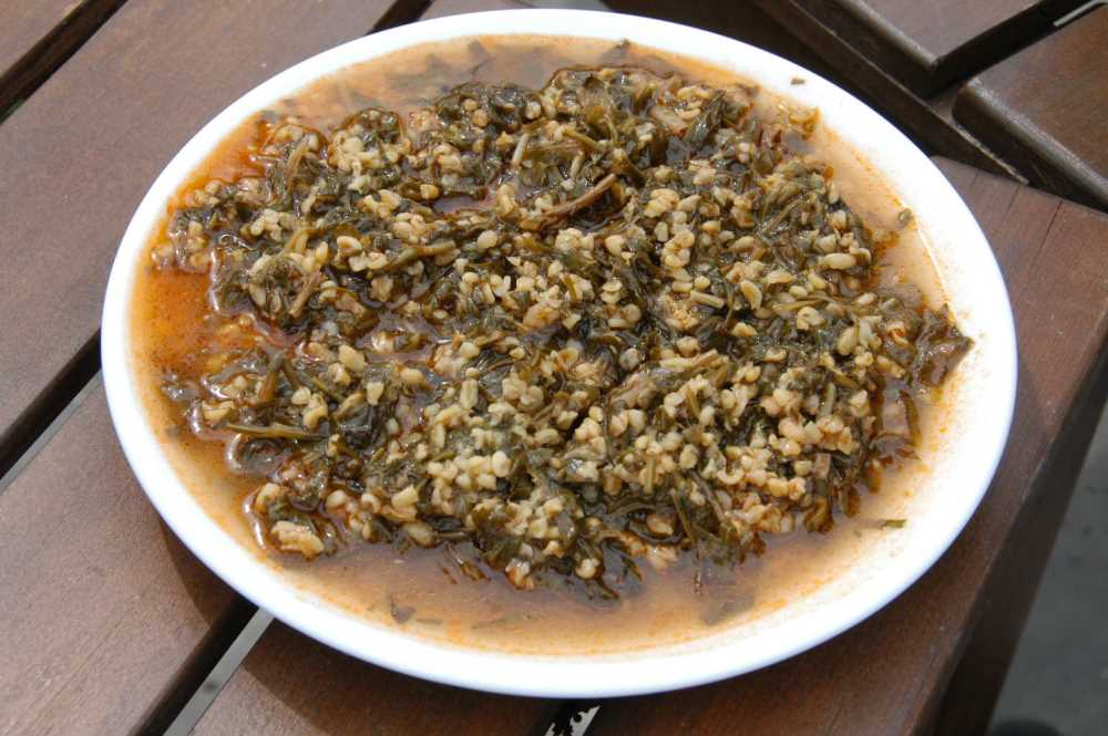 Yıl boyunca tüm ilçelerde vazgeçilmez geleneksel bir yemektir.Kara lahana, ıspanak büyüklüğünde kesilerek suda iyice pişirilir.Suyu süzüldükten sonra içine mısır kırığı (ğırğıl), tercihe göre taze ekşi erik (veya marmeladı), taze mısır taneleri, acı sivri biber ve domates konularak iyice pişirilir.Üzerine eritilmiş tere yağ konarak servis yapılır.İçine taze pişmiş mısır ekmeği doğranarak afiyetle yenir.