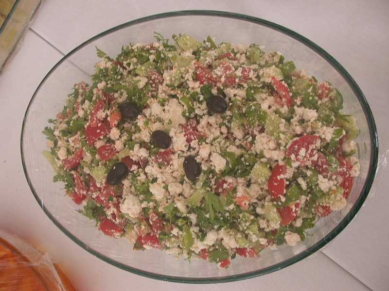 Yıkanıp küçük, küçük doğranan domates, biber ve salatalık çökeleğe karıştırılır. Soğan ve maydanoz ince kıyılır ve malzemeye ilave edilir. Üzerine tuz, zeytinyağı ve kekik eklenir, karıştırılır. Servis tabağına alınır ve üzeri zeytin ile süslenir. Kahvaltı için ideal bir yemektir.