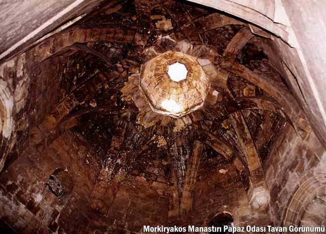 Özellikle Manastır Patriğinin yatak odası olarak kullandığı oda tavanını oluşturan sekizgen dilimli taş kubbenin, yıldızlı haçların mimari yapısında, üstün bir sanat değeri vardır. Büyük bir bölümü yıkık durumda olan Mor Kiryakus manastırında, birbirine bitişik çok sayıda ve farklı ölçütlerdeki odaların mevcut olması, buranın bir ibadethane, medrese ve inziva yerinden oluşan bir külliye olduğu anlaşılmaktadır.