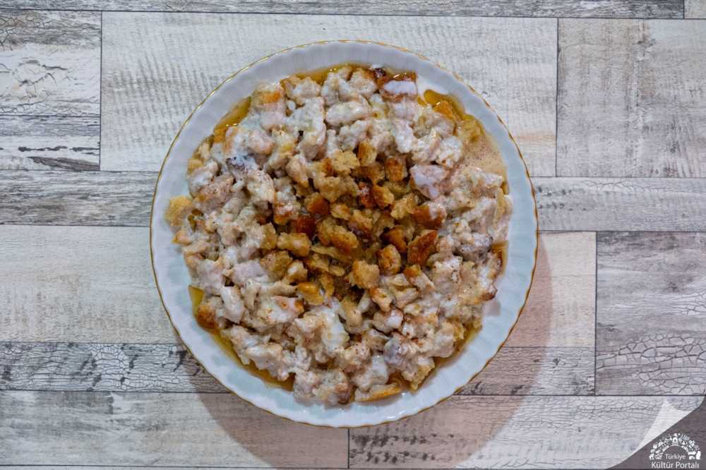 Mayasız una ılık su katılarak iyice yoğrulur. Yoğrulan hamur orta büyüklükte bir tepsiye konarak el ile tepsinin içinde dağıtılarak düzeltilir. Yanan ocaktaki köz açılır, altındaki kül temizlenir, tepsideki hamur közün içinde açılan yere düzgün konularak üstü sac ile örtülür. Sacın üstüne köz ateş konur, iyice kızartıldıktan sonra ekmek çıkartılarak soğumaya bırakılır. Soğuyan ekmek ufak ufak bir kaba doğranır, daha önce hazırlanan sarımsaklı ayran ve tereyağı üzerine dökülerek servis yapılır.