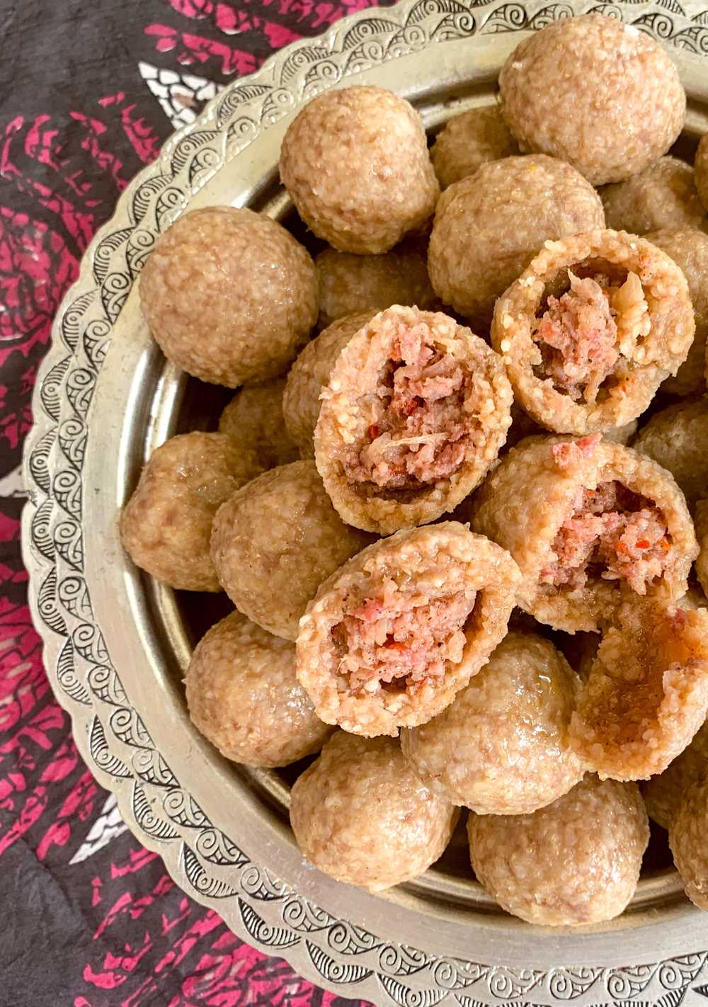 Soğan rendelenip suyu sıkılır, kavram yağı makinede çekilir. Yağlı kıyma,pul biber, sumak ve karabiber katılıp karılarak hazırlanan iç harç ceviz büyüklüğünde topaklar yapılıp buzdolabında dondurulur. İsteğe göre iç harca 1 adet ekşi nar veya limon suyu ilave edilir.