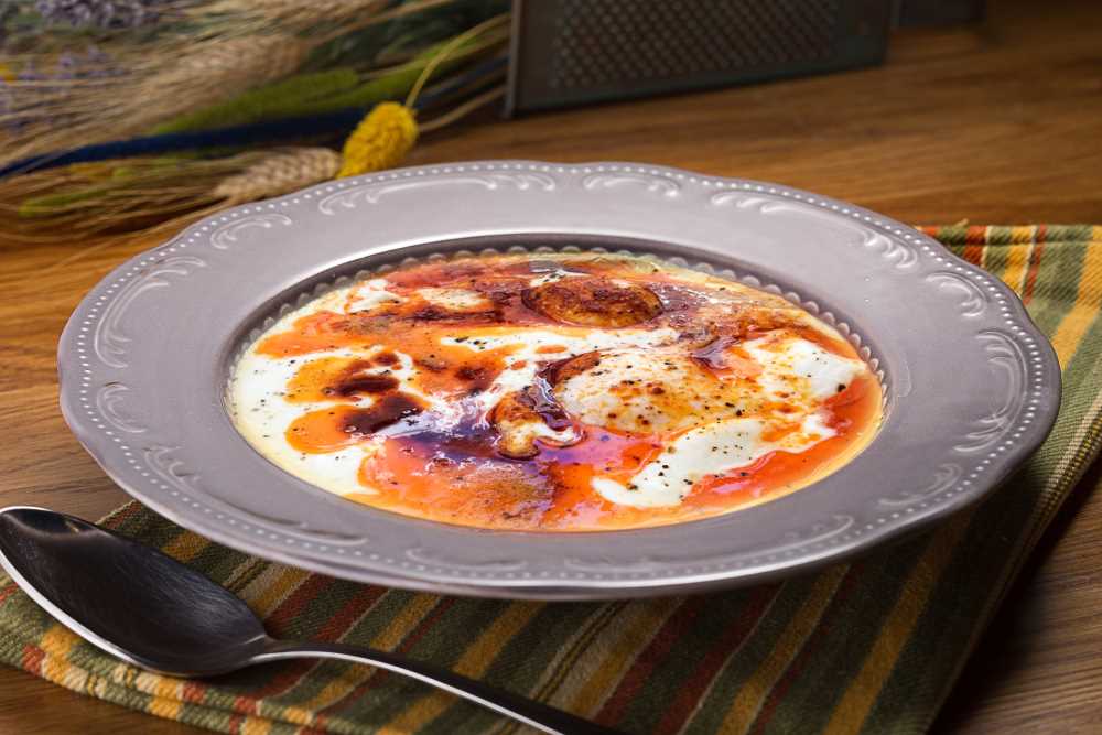 İnce doğranıp yağda kavrulan soğana domates salçası eklenip birlikte 2-3 çevirim kavrulur. Ayrı bir kapta tuz katılıp kaynatılan suya yumurtalar tek tek kırılarak pişirilir. Pişen yumurta süzgeçle alınarak kavrulmuş soğan üzerine dizilir. Kuru reyhan ve maydanoz eklenip 5 dakika kadar daha pişirilen yemek sunum tabaklarına alınır. Üzerine çırpılmış sarımsaklı yoğurt ve pul biberli tereyağı sos dökülüp sunulur.