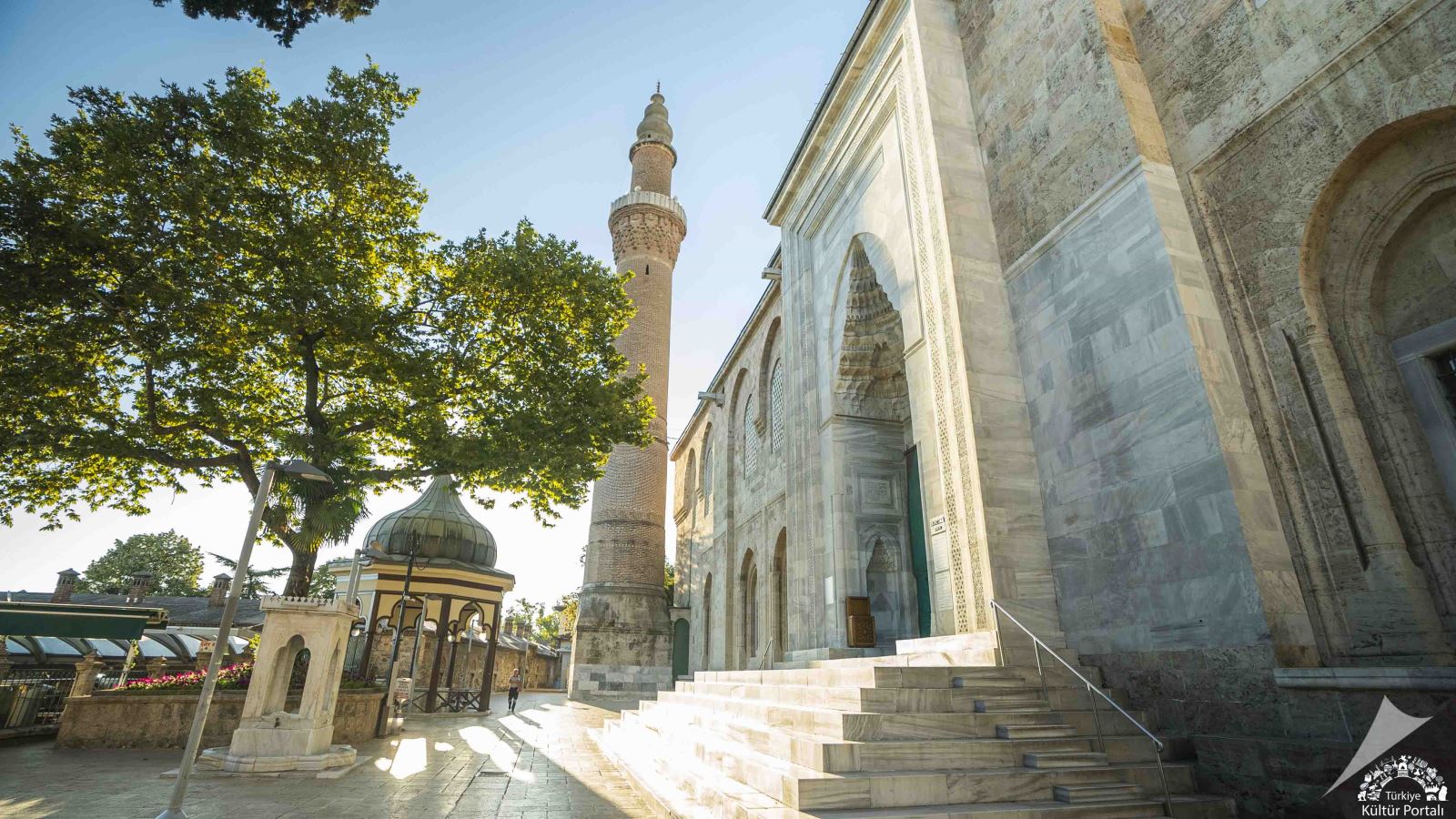 Cami avlusunda üç şadırvan bulunmaktadır. Cami içerisindeki şadırvanın ise Osmanlı Devleti’nin ilk yıllarında Türklerin suya olan ilgilerinden kaynaklanarak tasarlandığı tahmin edilmektedir. Kubbenin altında yer alan bu şadırvanın on altı köşeli havuzu ve üç çanaklı fıskiyesi olup su, fıskiyeden sekiz kol halinde dökülerek havuzdan musluklara dağıtılmaktadır. Mihrap ekseni ile her üç kapının ekseni şadırvanın merkezinde birleşmektedir.