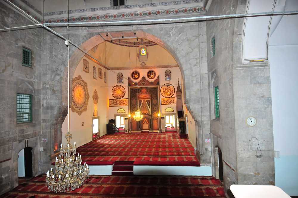This complex was built in the east of the city, upon the hill of the neighborhood referred to as 'Yıldırım'. It was erected by Yıldırım Bayezid in the late 14th century. Generally, inscriptions provide us with definite information about historical works, but those of this mosque are no longer extant. This structure presents us with the finest example of stone workmanship of the period. The legs and the arches that join them are made of piled lead-colored marble. The protico is covered by five domes. The central dome is high and gives the interior some spaciousness. The walls are ornamented with cut stone. The flanking exedras rise from the floor. These are covered by domes placed on the eight corners formed by pointed squinches. The niche dome is placed on a square base. Polished porphyry columns are placed at the corners. The rooms at the east and west are of stucco and have large cells and air vents. The green tiles with stalactite fringes, wide openwork, and 12 stars are decorated with inlay work, prayers written in calligraphy. The rooms are covered with diagonal vaults. The rooms at the northeast and northwest can be reached by the interior of the mosque. Both of the mosque's original minarets were destroyed by earthquakes and southwesterly winds. A new concrete minaret was added recently. Source : Bursa Provincial Directorate of Culture and Tourism.