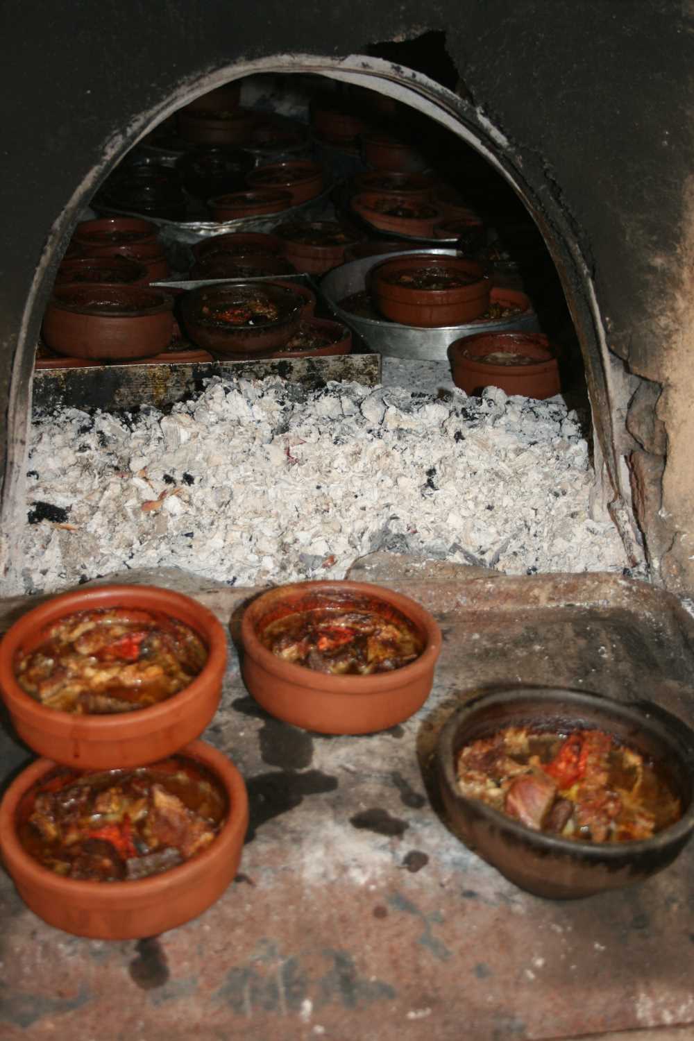 The back side of the Uludağ Mountain called the Mountain region has a district called Keles. This dish is especially cooked in Güveç restaurants during the Friday Bazaar held in the region where animal husbandry is widely spread. Before preparing the oven where the güveç is going to be cooked, the güveç makes a prayer for it to be blessing. The Keles güveç is usually made with goat or buck meat. Nowadays, as there are fewer males, bigger goats are preferred. After the goat is cut, it is chopped and cut into small pieces and put in a pot to be cooked. In recent years tomatoes and green peppers are added to the meat with a little bit of salt and water. Then, when the temperature is hot enough, the pot is put in the oven. The lid of the oven is covered with mud so that the oven is prevented from being in contact with the air. The güveç put in the oven in the evening is opened in the morning, the oven is re-heated lightly to keep the güveç warm. Bone water is added to the güveç that had lesser water. The güveç is served hot, bread and onion are also served on the table, and after it is eaten, graped are served as a dessert according to the season.