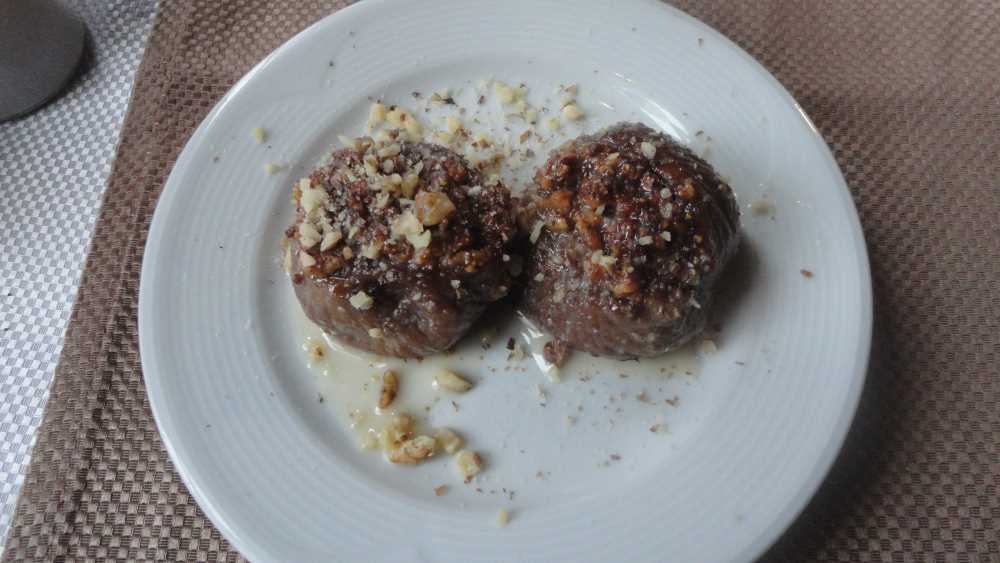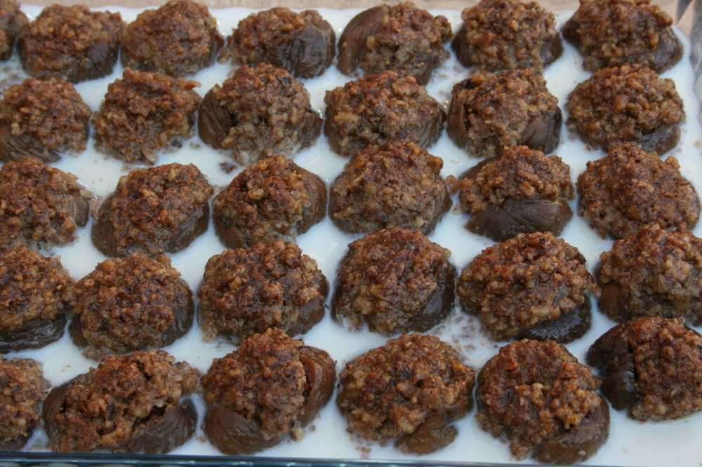 Fig wraps are cooked on special occasions. Dried figs are kept in warm water for about one hour to soften the figs, softened figs are filled with broken walnuts, then they are placed in a pot and boiled with milk or water and left to cool. It is served by adding cream on it.