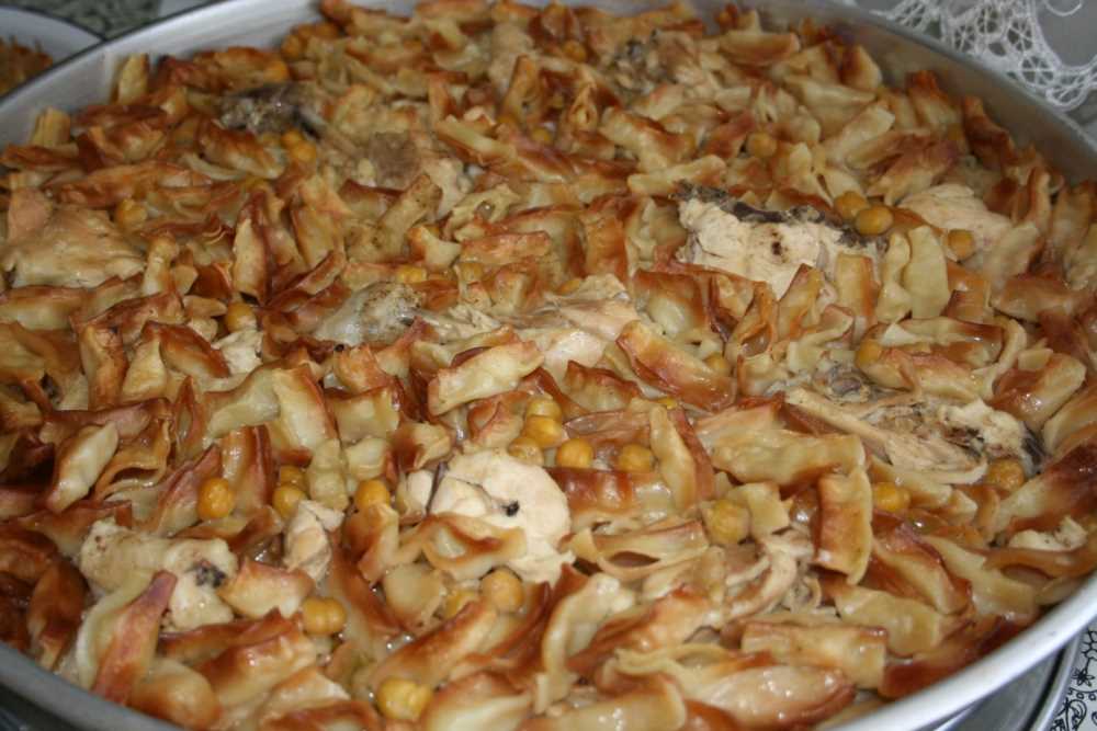 Un, tuz, yumurta, su ile yoğrularak çok sert bir hamur yapılır. Hamur bezelere ayrılarak yufka kalınlığında açılır. Açma tahtasının üzerinde bıçak ile 2cm genişliğinde 3cm boyunda hamurlar kesilir, hamurların dar kenarları karşılıklı olarak birleştirilerek tepsiye yerleştirilir. İsteğe göre iki sıralı olarak yapılabilir. Tepsinin kenarından başlayıp ortasına doğru dizilir. Tepsiye sıralanan mantılar orta sıcaklıktaki fırında üzerleri kızarıncaya kadar pişirilir. Tavuk üzerini kapatacak kadar su ile tencerede pişirilir, tencereden başka bir tabağa alınarak ayıklanır, sıcak olan tavuk suyu mantıların üzerine dökülür. Mantıların üzerini örtmeyecek kadar dökülen tavuk suyu ile parçalanmış tavuklar mantıların üzerine yerleştirilir, tepsi ile üzeri kapatıldıktan sonra demlenmesi için 30 dk beklenir. Sıcak olarak servis yapılır.