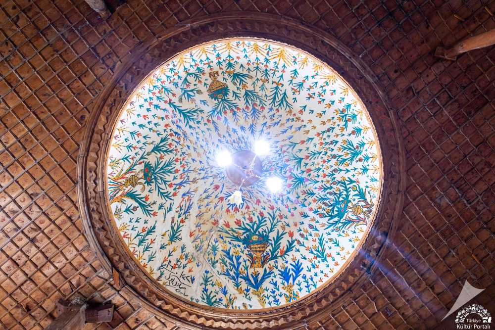 Mihrabın içi çiçek ve kandil motifi ile süslenmiştir. Harimin tavanında, minberinde, kapısında ve mahfilinde zengin oyma ahşap işçiliği görülmektedir.