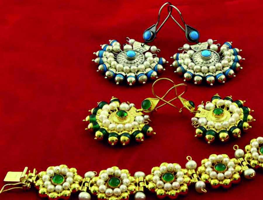 İncili küpe üç boydur, küpenin kenarlarındaki altın toplar 6, 8 ve 12 tane olarak sınıflandırılır. Bir çift küpe 300 parçanın tek bir parçada birleştirilmesiyle oluşturulur. Küpenin göbeği orijinalinde kırmızıdır. Bir çift küpenin yapımı 2 gün alır ve işçiliği çok zordur.