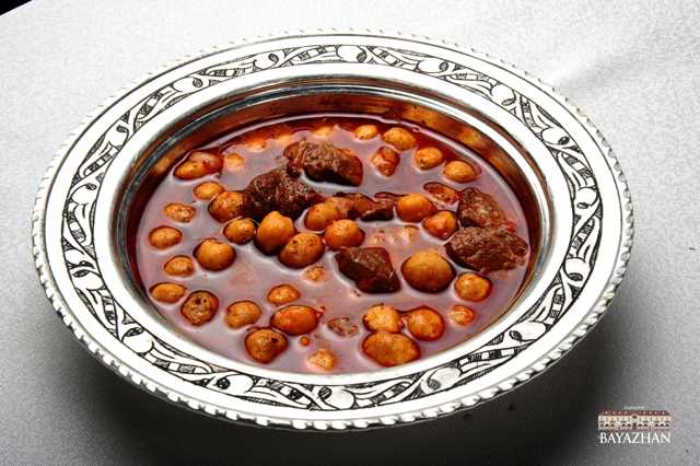 Simit önce su ile biraz ıslatılır. Soğanlar ufak ufak doğranır. Karabiber, kırmızıbiber ve tuz ilave edilerek iyice yoğrulur, (15-20 dk.) içine kıyma ilave edilir, köfte iyice yumuşayınca kadar yoğrulur. Köfteden bilye büyüklüğünde parçalar kopartılarak avuç içinde yuvarlanır. Diğer tarafta bir gece önceden ıslatılmış nohut ve et, halka halka doğranmış soğan ile et ve nohut yumuşayıncaya kadar pişirilir. Salçası ve ekşisi konulur. 2-3 taşım kaynatılır. Ayrı bir tencerede kaynatılan suya bir miktar tuz konur ve bu suda yuvarlanmış köfteler pişinceye kadar kaynatılır. Pişen köftelerin suyu süzülür. Servis yapılacağı zaman köfteler et ve nohutlu karışımın içine konur, biraz ısıtılır üzerine kızdırılmış yağ ile nane dökülür.