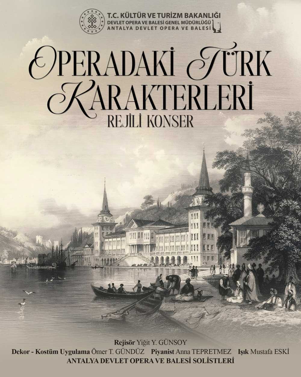 Türkler, 1600’lü yıllarda yaşamış olan Vivaldi ve Handel’den 1700’lü yıllarda yaşamış olan Mozart ve Weber’e; 1800’lü yıllarda yaşamış olan Rossini, Bizet ve Donizetti’den, 1901 yılında hayata veda eden Giuseppe Verdi’ye kadar çok değişik ülkelerde yaşamış, değişik dillerde eser vermiş ve değişik yüzyıllarda aktif olarak beste üretmiş sanatçıların eserlerine konu olmuştur. “Operadaki Türk Karakterleri” konserinde bütün kahramanlar Türk kökenlidir. Eserler içinde bulundukları operadaki sıralarına göre bir araya getirilmeden, herhangi bir kronolojik sıraya göre de dizilmeden sahnelenmiştir. Sözlerine ve müziğine sadık kalınan parçalar bir konserdeki gibi bağımsız parçalar olmayıp, adeta akıp giden bir eser haline dönüştürülmüştür.