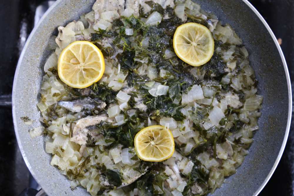 Hamsiler yıkanıp suyu geçinceye kadar bekletildikten sonra kılcıkları tek tek alınır. Soğanlar ve maydanozlar iyice kıyılır. Tavamıza bir miktar sıvı yağ döküp, üzerine kıydığımız soğanların yarısını ince bir tabaka olacak şekilde tavamıza yayılır, onun özerine kıydığımız maydanozların yarısını ilave edip, hamsilerimizin dış yüzü soğanla temas edecek şekilde tavamıza sık olarak dizilir. Üzerine 1 çay kaşığı karabiber ve tuzumuzu döküp, hazırlamış olduğumuz kıyılmış soğanların ve maydanozların diğer yarısını hamsinin üzerine yayıp, halka şeklinde kesmiş olduğumuz limonlarda üzerine dizilir. Tereyağını koyduktan sonra üzerine yarım su bardağı sıcak su döküp tavamızın kapağını kapatılır. 15 - 20 dakika pişirilir.