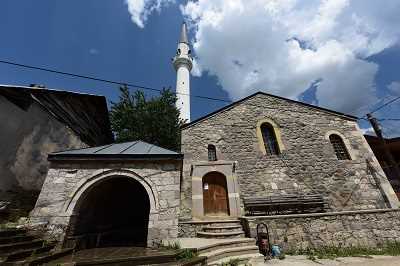 Bazilika tarzında dikdörtgen planlı, beşik çatılı, üzeri sac kaplı taş cami. |