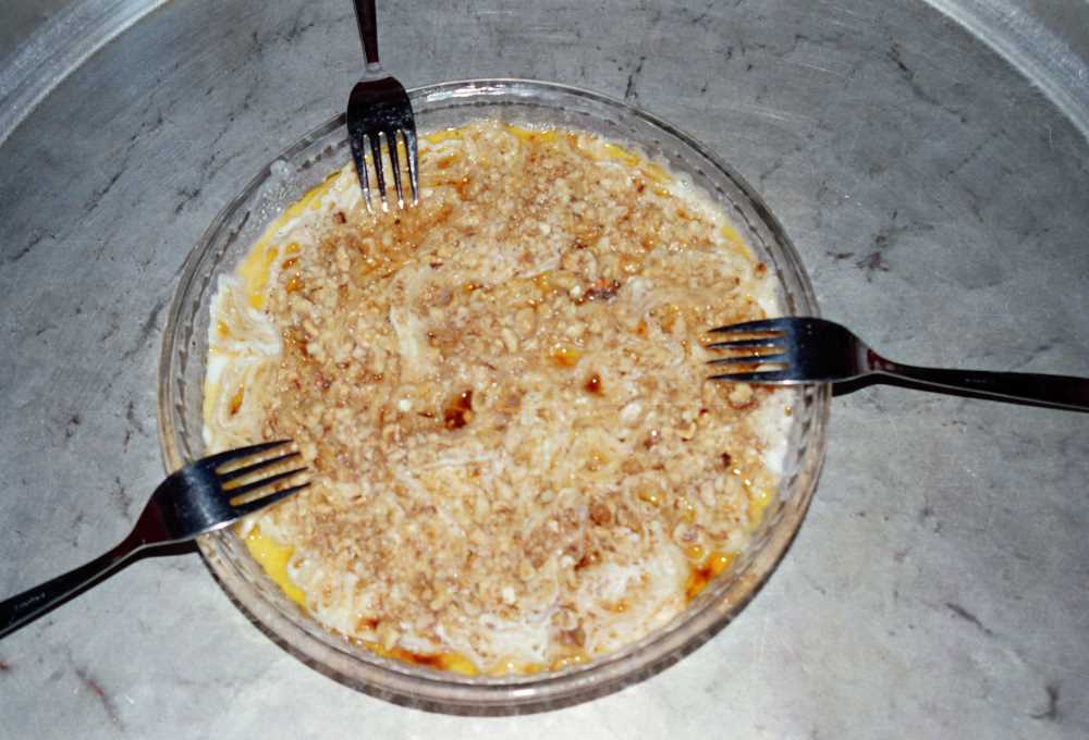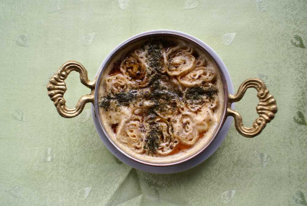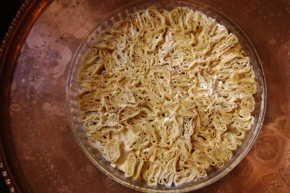Malzemeler Gevrek olmayan katlanabilir taze yufka Yoğurt süzmesi Tereyağı Dövülmüş ceviz Yapılışı: Yufkalar (un, su, tuzdan yapılmış) 4 cm genişliğinde katlanır. Katlanan yufkalar, 2 cm genişliğinde yatay kesilerek kesik kısımlar üste gelecek şekilde dizilir. Sıcak suda ezilen süzme, yufkaları ıslatacak şekilde tabağa dökülür. Kızdırılmı tereyağı sironların üzerinde gezdirilerek yağlanır. Arzuya göre sironların üzerine ceviz serpilir. Yine arzu edilirse süzmenin suyuna birkaç damla sarımsak suyu dökülür.