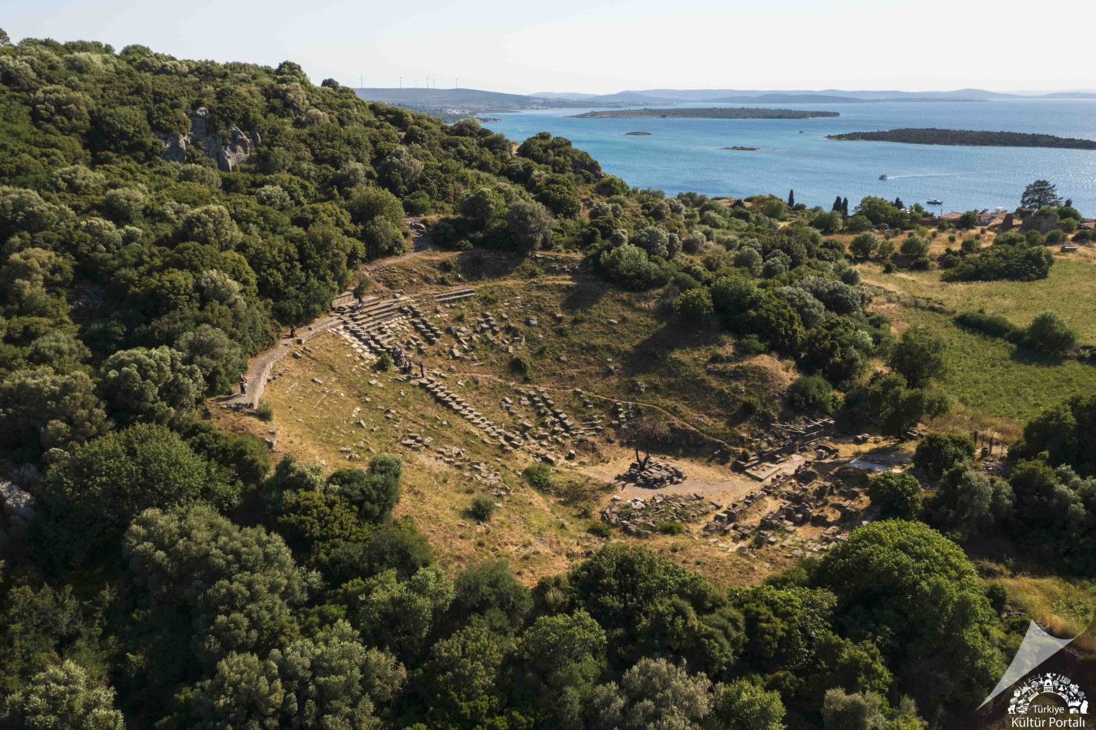Ören yerinde Ankara Üniversitesi Arkeoloji Bölümü tarafından yürütülen kazılarda ilk önce, MÖ 3. yüzyıl sonralarında yapıldığı sanılan akropolün kuzey yamaçlarındaki antik tiyatro toprak altından çıkarılmıştır. Çift diazomalı (seyirci oturma platformları) olan yapının skene (sahne) binasının günümüzde sadece temelleri mevcuttur. Tiyatroya giden yolun girişinde ise Erythrai’de yaşamış önemli bir kişi adına yapılan anıtsal mezar, heroon yer almaktadır.