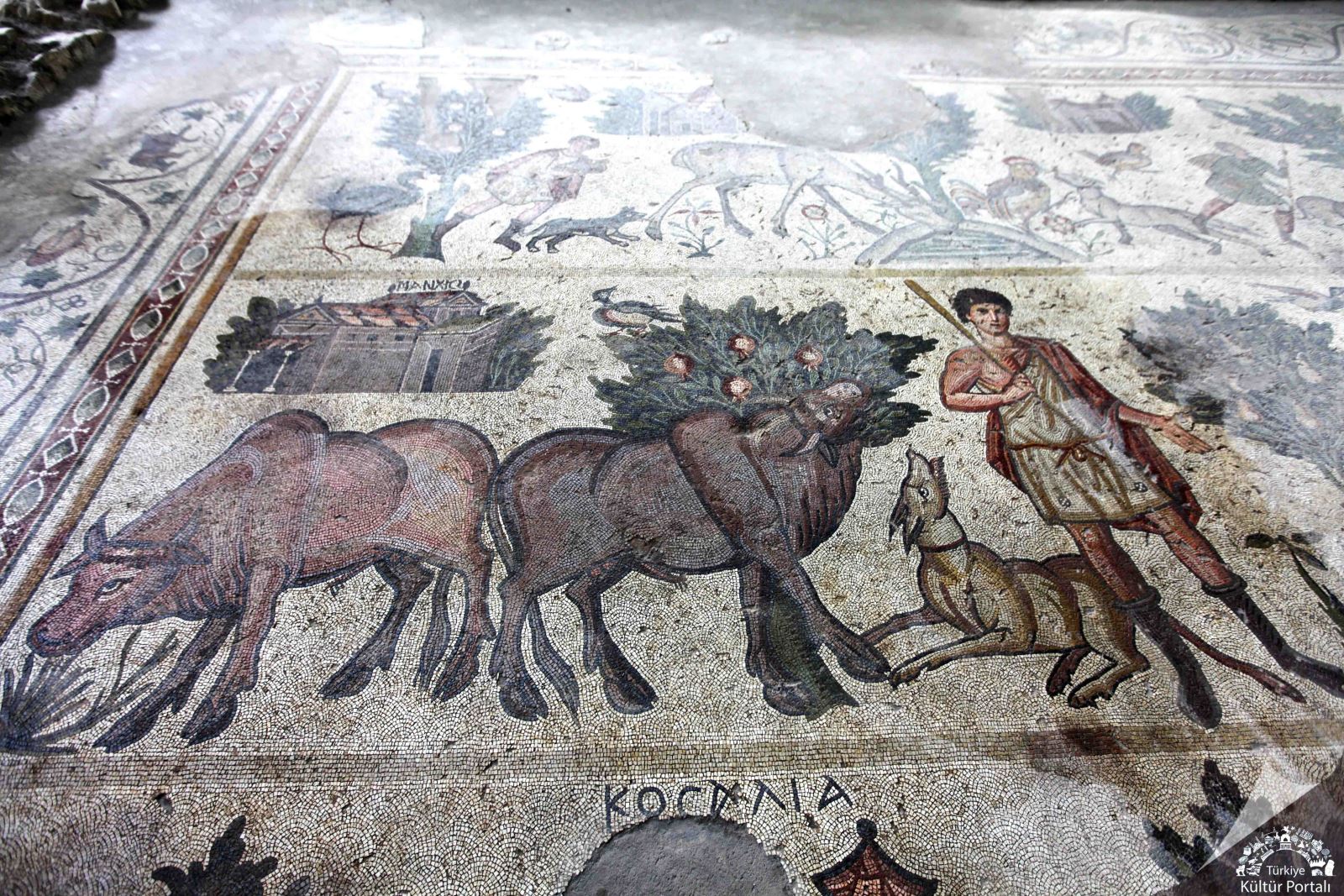 Mozaikler üzerinde genel olarak, bu dönemde şehirde yaşanan siyasi, sosyal, kültürel ve iktisadi durumu yansıtan konular işlenmiştir. Mozaik tabakalarındaki tessare çokluğu aynı zamanda motiflere ince detayların verilmesini sağlamıştır. Mozaiklerdeki tasvirlerde bitkisel ve geometrik motifler, günlük hayattan seçilmiş betimlemeler ve dönemin mimari yapısını gösteren kompozisyonlar yer almaktadır. Mitolojiden çok yerel yaşamın tasvir edildiği mozaik alanlar, yaklaşık 2500 yıl öncesinde dair tarihi bilgiler sunmaktadır.