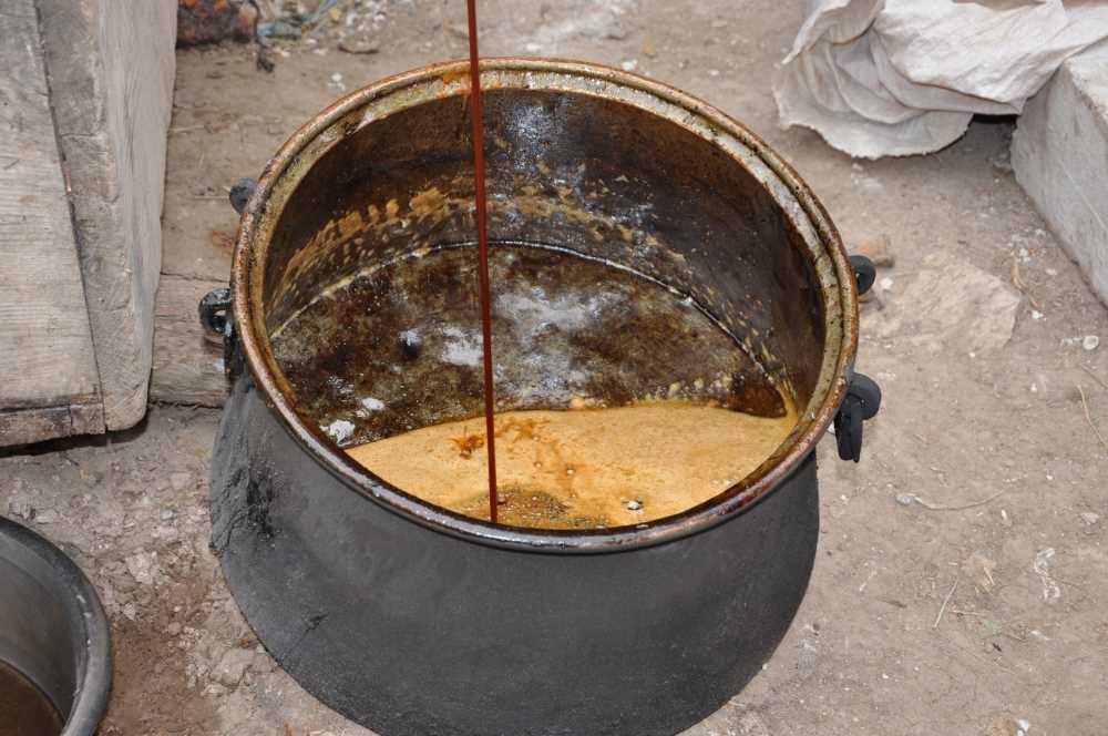 Bastık yapımı: Üzüm suyunun nişe ile kaynatılması sonucu elde edilen hapısa, ince bir şekilde tahta malalar ile saten bezler üzerine serilmekte ve güneşte kurutulmaktadır.