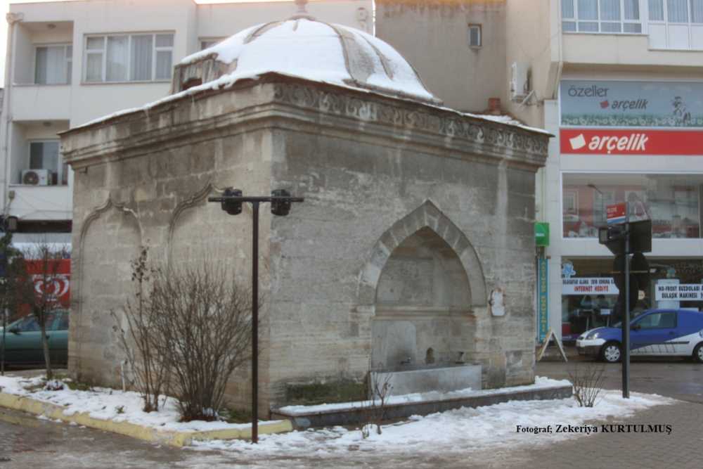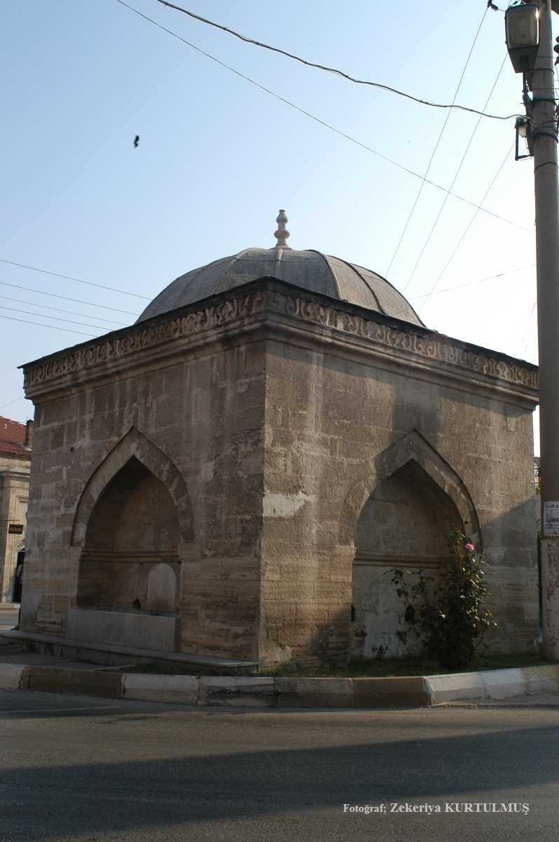 Asfalt üzerinde, hamam karşısında bulunmaktadır.17. yy. yapısıdır. Şehir suyu akıtmakta olan çeşmenin kitabesi Bulgar istilasında kazınmıştır. Kesme köfeki taştan, dört cepheli ve kubbeli bir meydan çeşmesidir. Halen tek yüzü faal olup, Edirne’nin klasik çeşmeleri tipindedir.