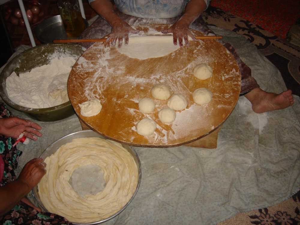 Kalın Kıyı Malzeme: 1 paket pak maya, yarım kg kıyma, 1 yumurta, yoğurt, tuz, un, toz şeker, salça, yarım çay bardağı sıvı yağ, su. Hamurun kabartılması için, bir paket pak maya bir tutam toz şeker, ılık süte karıştırılır. Derin bir kabın içerisinde bulunan un içerisine 1 yumurta, bir tutam tuz, yarım çay bardağı sıvı yağ dökülür. Ilık süt ile kulak memesi yumuşaklığında hamur yapılır ve hamurun kabarması için hamur temiz bir bezle sarılarak bekletilir. Hamurdan yumruk büyüklüğünde parçalar koparılarak kalın kalacak şekilde oklava ile yufka açılır. Birinci yufka tepsinin içerisine yayılır. Daha sonraki yufkaların üzerine ay çiçek yağı serpilir, yufkalar büzülerek ortalama 40 cm çapındaki tepsinin ortası boş kalacak şekilde kenarlarına dizilir. En sonundaki yufka ilk yufka gibi tepsinin tamamına yayılır. Tepsinin ortasında ortalama 10 cm çapında bir boşluk kalmıştır. Bu haliyle yufkaların tekrar kabartılması için bekletilir. Bu arada ince kıyılmış bol miktarda soğan bir tencerede kavrulur. İçerisine yarım kg kıyma ve bir kaşık salça ilave edilir. İçerisine su konarak koyu kıvamda yemek olarak pişirilir. Bu yemek, yufkaları kabarmış olan tepsinin ortasına dökülmeden, yemeğin koyu kıvama ulaşması amacıyla bir kaşık un sulandırılarak soğan yemeğinin içerisine dökülür. Tepside kabaran hamuru (yufkaları) fırına koymadan önce yoğurt, yumurta, yağ karışımı yapılarak hamurun üzerine sürülür. Daha sonra tencerede pişirilen soğanlı, kıymalı yemek tepsinin ortasında çukur bırakılan bölüme dökülür ve önceden ısıtılmış fırına konur. Yufkalar kızarıncaya kadar fırında pişirilen kalın kıyı yemeği, tepsinin kenar kısımlarına büzülerek konulan yufkalar elle koparılıp, ortada bulunan soğanlı, kıymalı yemeğe bandırılarak yenir. Kaynak Kişi: Adı Soyadı : Ayşe Yesim Doğum Tarihi : 1934 Doğum Yeri : Karahalil Kasabası / KIRKLARELİ İkamet Yeri : Karahalil Kasabası / KIRKLARELİ Derleme Tarihi : 20 Haziran 2006 Kaynak kişi bu yemeği annesinden öğrenmiş, yapmaya başlamış ve halen yapmaktadır. Derlemeyi Yapan: Zekeriya Kurtulmuş Kırklareli İl Kültür ve Turizm Müdürlüğü Halk Kültürü Araştırmacısı