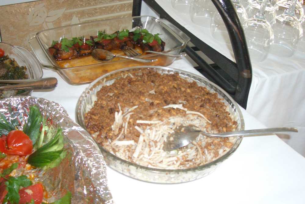 Malzeme: 500 gr ev eriştesi 2 su bardağı dövülmüş ceviz içi 2 su bardağı rendelenmiş keş 200 gr köy tereyağı, biraz tuz. Yemeğin Hazırlanışı: Erişteler kaynamış tuzlu suda pişinceye kadar haşlanır. Piştikten sonra makarna süzgecine boşaltılıp süzdürülür. Derin bir tavaya tereyağı konur eriyene kadar kızdırılır. Ardından ceviz içinin 1 bardağı ve keşin 1 bardağı tereyağının içine konur devamlı karıştırılarak keşin ve cevizin kızarması sağlanır. Nar gibi kızardığında ateşten alırnır. Eriştenin servis yapılıp sunulacağı yuvarlak bir cam kap tepsi ayarlanır. Birer bardak ceviz içi ve keş bir kapta karıştırılır. Cam tepsiye ilk olarak eriştenin 4/1’i yayılır. Ardından ceviz ve keş karışımı serpilir, tekrar erişteden tepsiye bir miktar konur. Tekrar ceviz içi keş serpilir. Bu işlem 2 kez daha tekrarlanır ve en üstüne tavada nar gibi kızdırılan tereyağı, keş, ceviz içi güzelce dökülür. Her tarafına eşit miktarda yayılır ve sıcakken servis edilir.