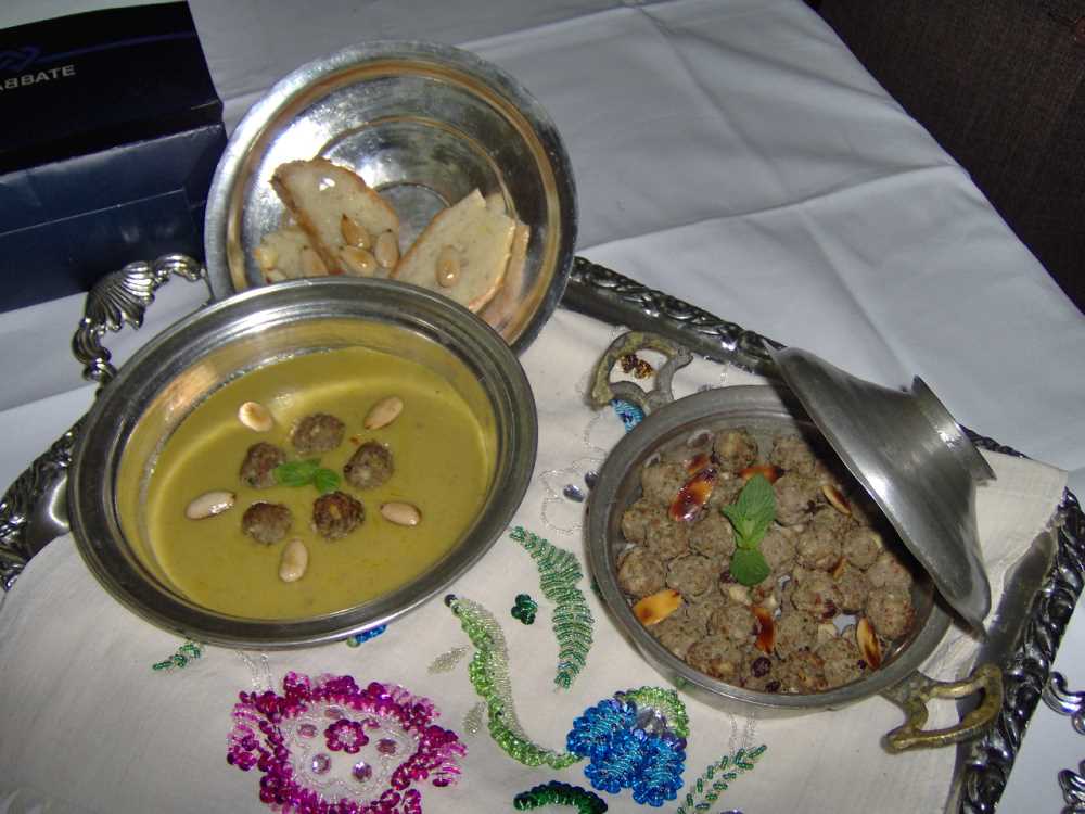 Yemeğin Hazırlanışı: Çorbası için; 1 baş soğan, 3 diş sarımsak, 1 çay kaşığı safran, 2 su bardağı sarı mercimek, 6 su bardağı tavuk suyu veya et suyu, pul biber, tuz, karabiber, kereviz sapı, maydanoz, kekik bu malzemelerle çorbamızı elde ediyoruz. Köftesi için; 1 kilo köftelik kıyma, 1 su bardağı badem, 1 çay bardağı süt, 4 dilim ekmek, 2 kaşık kuş üzümü, 2 diş sarımsak, bir tutam maydanoz, bir yumurta, pul biber, tuz, kişniş, karabiber ile köfte haline getiriyoruz. Sunumu için; 3 kaşık yoğurt, 1 tatlı kaşığı bal, limon suyu, nane.