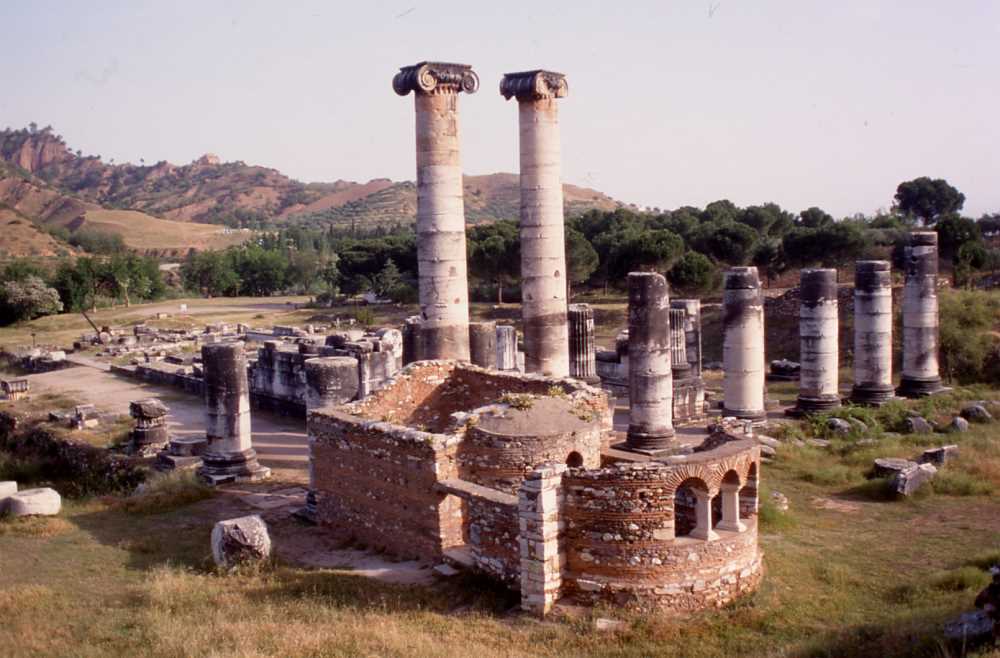 Artemis Tapınağı ilk olarak Lydia kralı Kroisos tarafından bir sunak olarak kum taşından yaptırılmıştır. Asıl tapınağın yapımına M.Ö. 330 yılına doğu başlanmış fakat tamamlanamamıştır. Helenistik dönemde “Zeus ve Artemis” isimleri kullanılmış, Roma döneminde ise tapınağın batı bölümü Artemis, doğu bölümü Antoninus Pius’a (M.S. 138-161) adanmıştır.