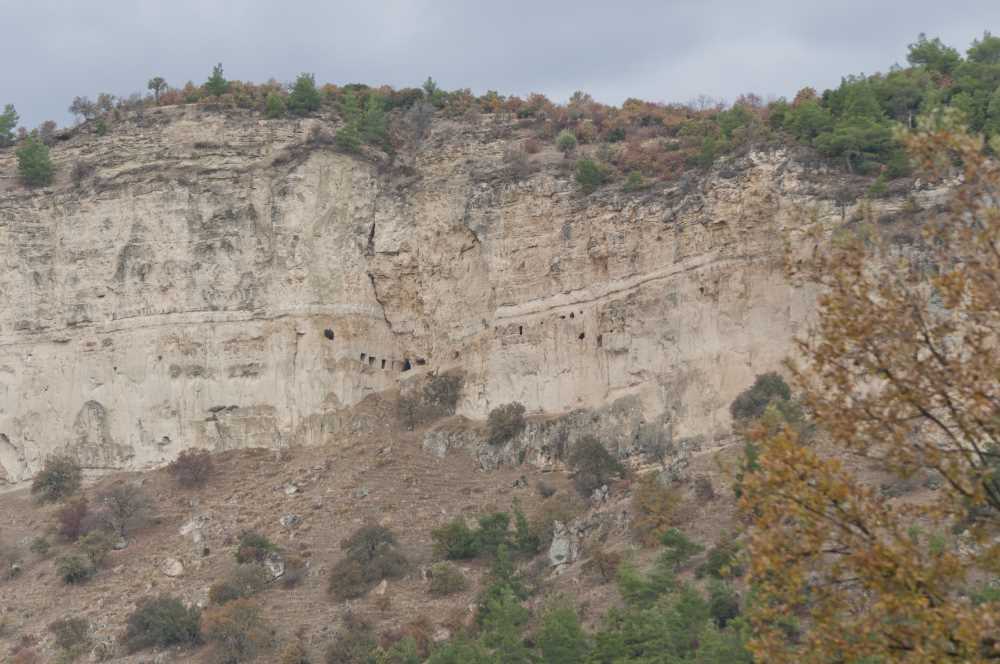 Manisa İli, Demirci İlçesi, Çataloluk Köyü Delikyar sırtlarında güneydoğuya bakan dik yamaçlarda ana kayaya oyulmuş Bizans Dönemi Manastırı dışarıdan bakıldığında kayalara oyulmuş delikler pencerelerdir. Trabzondaki Sümela Manastırını anımsatmaktadır. Orta bölümü çökmüş ve buradaki mekanlar tahrip olmuşlardır. İki katlıdır, ana bir koridor ve bu koridora bağlanan yaklaşık 3x5x1.5m boyutlarındaki odalardan oluşur. Üst katında yaklaşık 13 oda bulunmaktadır. Üst katın koridorunun ortasındaki bir merdivenle alt kata geçilir. Aydınlatma sadece uçurum tarafına açılan pencerelerle sağlanmaktadır. Bir noktada ise aşağı inen basamaklar olan bir dehliz bulunmaktadır. Mekan içinde haç kabartmasına rastlanmıştır. Delikyar sırtlarının güney doğusundaki dik yamaçta bulunan ana yapı yanında güneyindeki Hisarkaşı Tepesinin doğu yamaçlarında da kayalara oyulmuş girintiler vardır. |