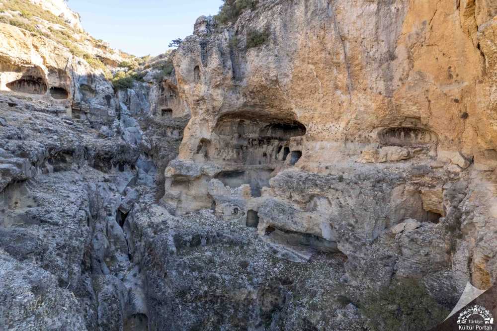 Alahan Manastırı’nın 3 kilometre kuzeybatısındadır. Alahan Manastırı’ndan çıkıp Karaman’a doğru yol alırken solda kule görünümlü bir kaya mezarına rastlanır. Bu mezardan sola dönülür ve aşağıya doğru meyilli olarak inilmeye başlanır. Özel veya kiralık araçla ulaşılabilir.