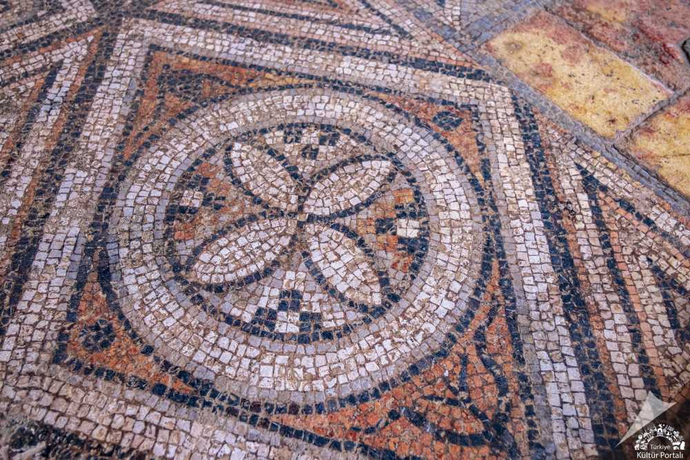 Zeus’un üç kızının resmedildiği taban mozaiğinin üst kısmında yer alan yazıtta “Ey dost, bu güzel hamamın suyunun saklı olan kaynağını kimin bulduğunu sorarsan, bil ki o kişi, kutsal adaları dürüst yöneten ve imparatorların da dostu olan Poimenios’tur” yazmaktadır. Poimenios, Doğu Roma yönetiminde yüksek görev sahibi bir yöneticidir.