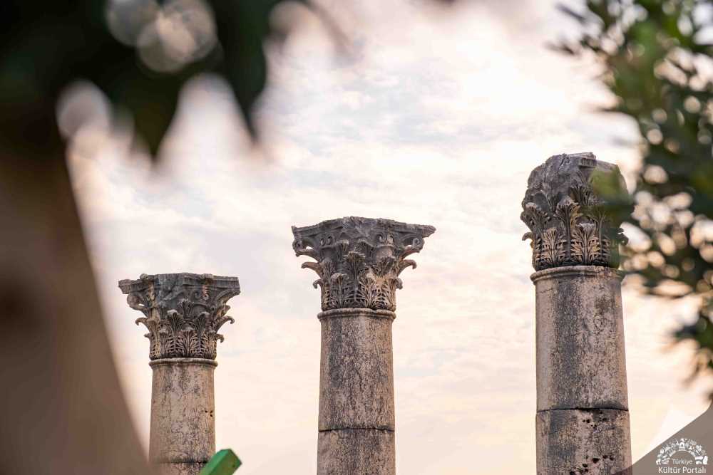 Sütunlu Cadde: Bugün caddede toplam 33 sütun ayaktadır. Bunlardan 4’ü batı 29’u doğu sütun dizisine aittir. Korinth düzenindeki sütun başlıklarından bazıları figürlüdür. Ayrıca bazı sütunların üzerindeki yazıtlardan, caddeye bakan konsolların Romalı imparatorların ya da üst düzey yöneticilerin büstlerini taşıdığı anlaşılmaktadır.