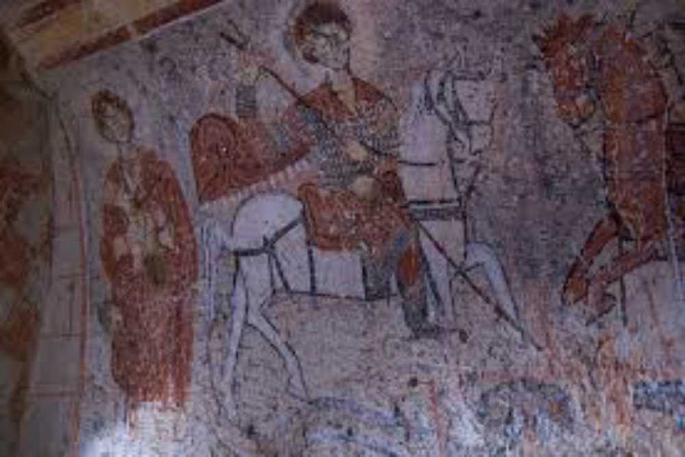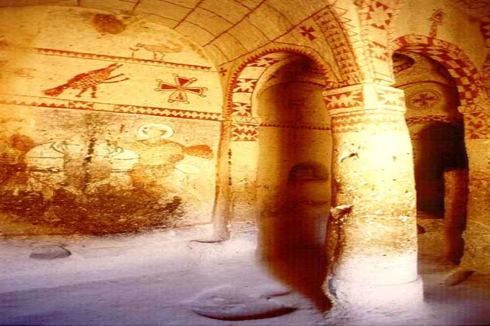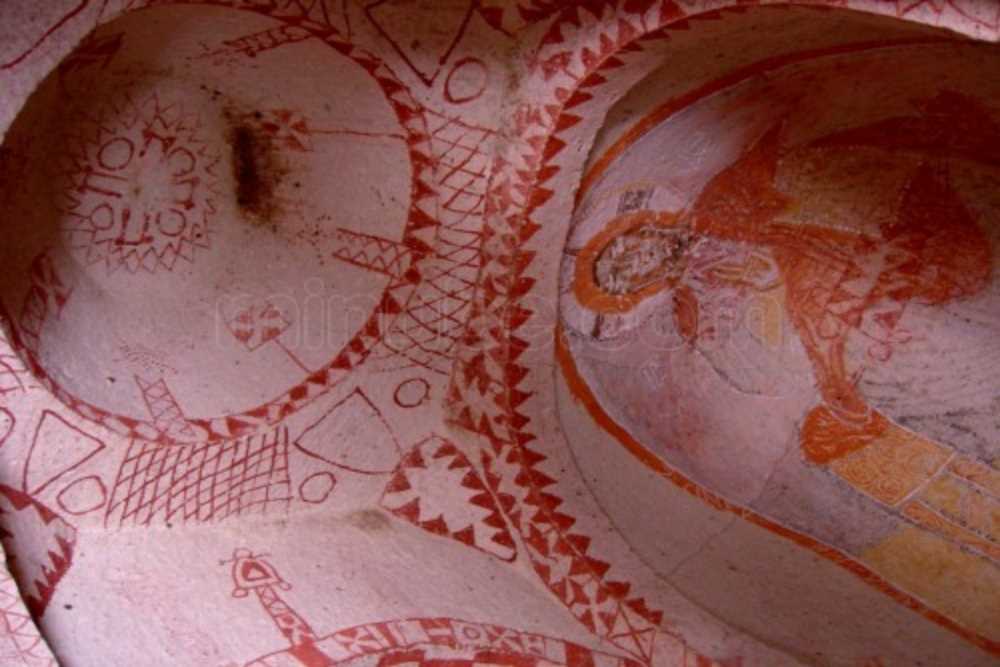 Motifler kırmızı boya ile doğrudan kaya üzerine çizilmiştir. Duvarlarda ve kubbede zengin geometrik motifler, mitolojik hayvanlar ve askerî semboller bulunmaktadır. Ayrıca duvarlarda taş izlenimi veren motifler de yer almaktadır. Kilise 11.yüzyılın ikinci yarısına tarihlenmektedir.