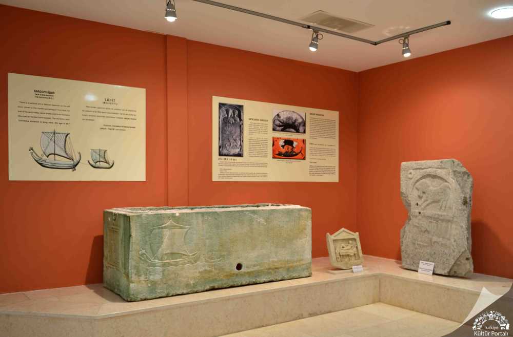 Taş Eserler Salonu: Bu bölüm ölü kültüyle ilgili olup Anadolu'nun arkaik dönemine ait en eski mezar steli örnekleri kronolojik olarak sergilenmektedir. Ayrıca bu bölümde yer alan ve bir mezar anıtına ait olduğu düşünülen mermer "Geyik Parçalayan Aslanlar" grubu ve bir denizciye ait lahit, görülmeye değer nadir buluntulardandır.