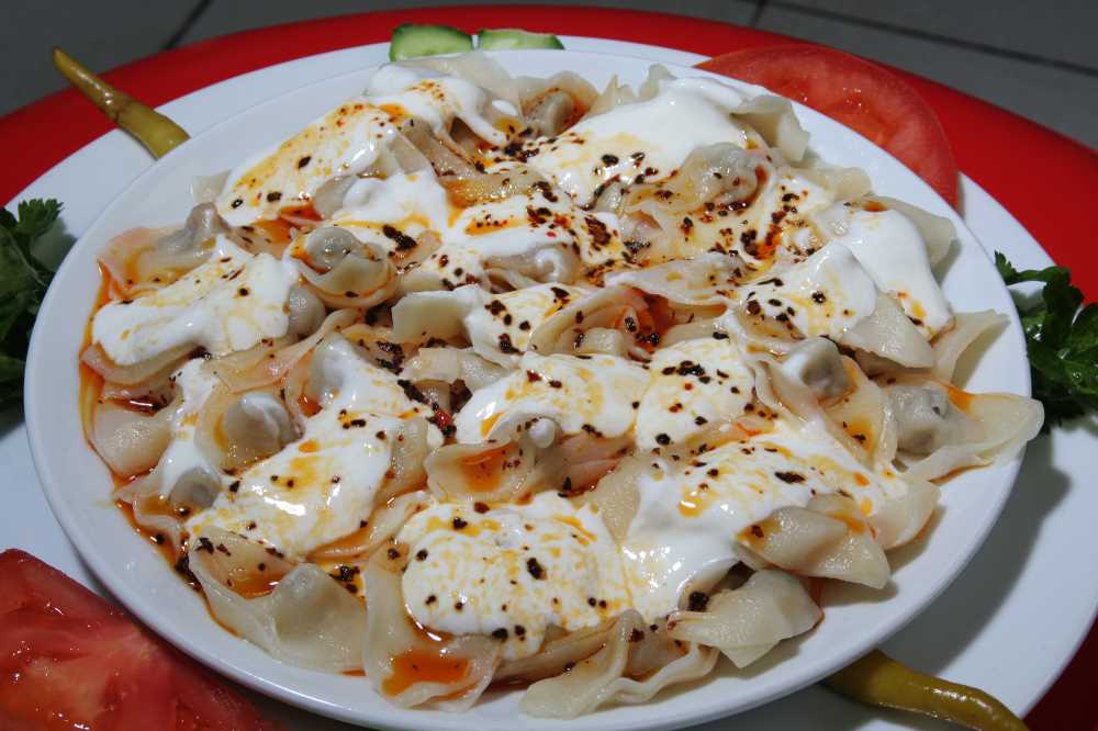 Yumurta, un, tuz ve suyla orta sertlikte bir hamur yoğrulur ve parçalara ayrılır. Bir süre dinlendirilen hamur parçaları, oklava ile orta kalınlıkta açılır ve yaklaşık beşer santimlik karelere bölünür. Karelerin içine kıyma, soğan, tuz ve karabiberden oluşan karışım konulur ve hamurlar muska şeklinde ikiye katlanır. Katlanan hamurlar önce kaynamış tuzlu suda haşlanır sonrasında buradan bir süzgece alınır ve birbirlerine yapışmasını engellemek için üzerlerine soğuk su dökülür. Daha sonra bir tepsiye veya tabağa alınan hamurların üzerine isteğe göre ceviz, keş veya sarımsaklı yoğurt dökülerek servis edilir. İsteğe göre bu malzemelerin üzerine kızdırılmış tereyağı veya kekik, nane, pul biber gibi baharatlar da dökülebilir.