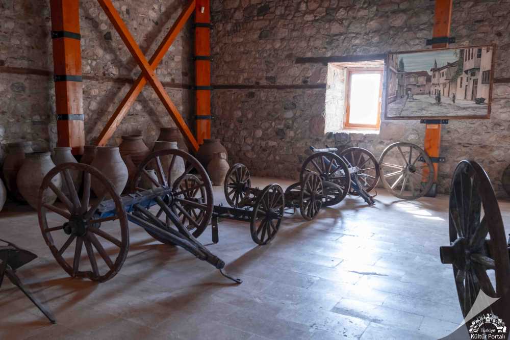 Müzede ayrıca kağnılar, savaş topları, at arabaları, top arabaları ve tablolar ile geleneksel kıyafetler, sandıklar, müzik aletleri, beşikler, semaverler, bakır ve taş objeler gibi gündelik yaşamın parçası olan çok sayıda değişik eser teşhir edilmektedir. Kent Müzesi’nin avlusunda da mezar taşı, lahit ve eski bir itfaiye aracı gibi eserleri görmek mümkündür.