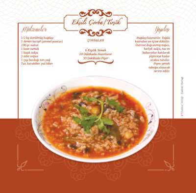 NOT: Bu çorba arzu edilirse nohutla da yapılabilir veya çorbaya haşlanmış nohutta ilave edilebilir.