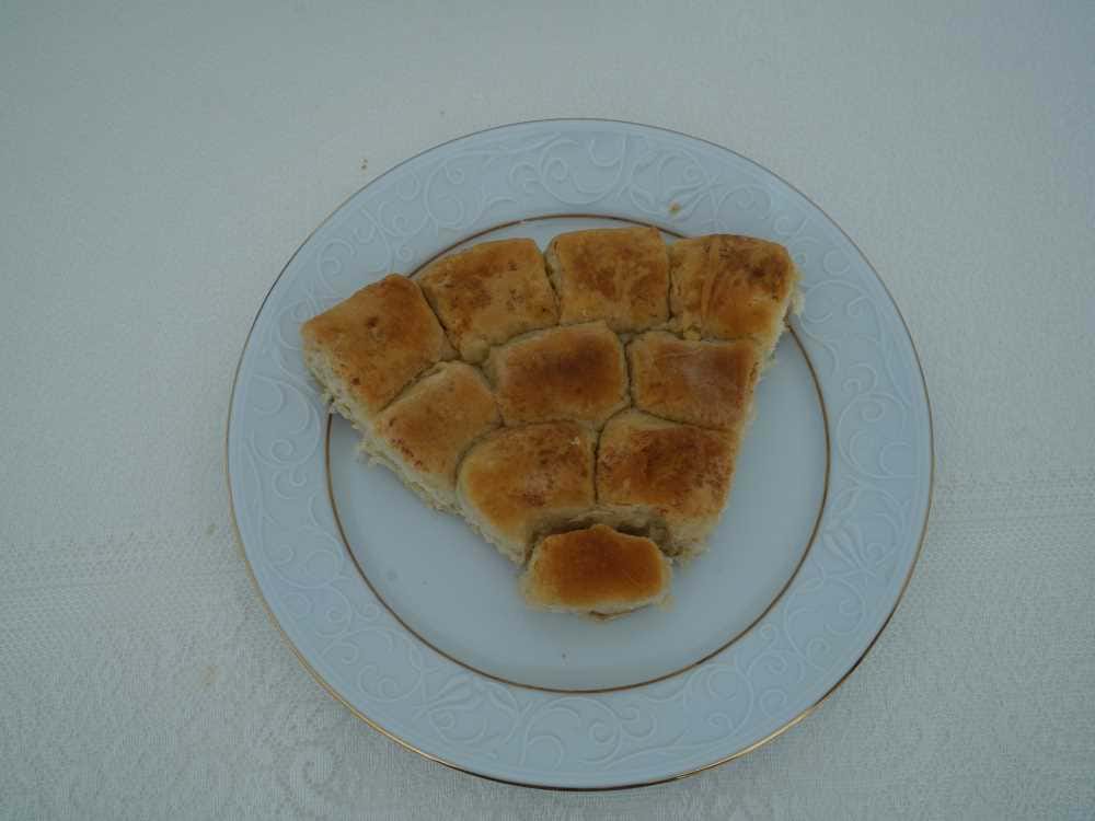 Hamur malzemelerinden kulak memesi kıvamında bir hamur elde edilir. Mandalina büyüklüğünde yumak alınır ve açılır. Üzerine yağ dökülür ve çökelik eklenir. Rulo halinde sarılır. 5 cm büyüklüğünde kesilir , tepsiye dizilir ve üzerine yağ dökülür. Ilık bir fırında tepsi bekletilir ve mayalanması sağlanır. Sorasında 200 derece fırında pişirilir. Servis yapılırken üzerine sarımsaklı su dökülür.